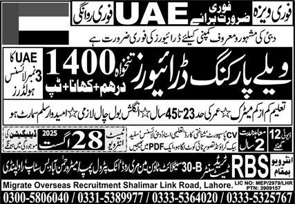 Latest Driving jobs and others Overseas jobs in RBS Brothers closing date is around August 28, 2025, see exact from ad. Read complete ad online to know how to apply on latest RBS Brothers job opportunities. Salary varies from 108000.