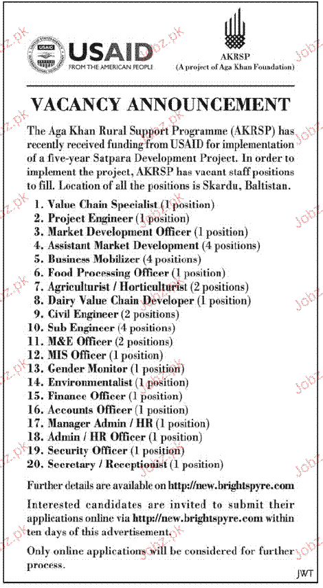 Apply as per details in job advertisement. Login to view further details of how to apply via https://www.jobz.pk online.