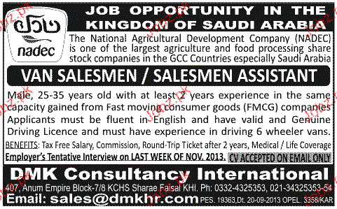 Van Salesmen / Salesmen Assistant Job Opportunity