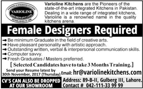 Varioline Kitchens Pvt Ltd Female Designer Required 2017