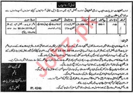 Vegetable Research Institute AARI Faisalabad Jobs 2018