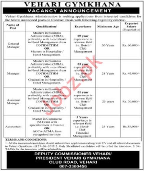 Apply as per details in job advertisement. Login to view further details of how to apply via https://www.jobz.pk online.