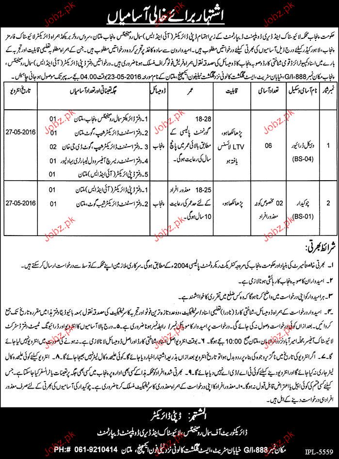 Vehicle Drivers and Chawkidars Job in Live Stock and Dairy