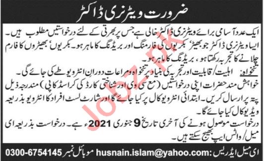 Veterinary Doctor & Animal Doctor Jobs 2021 In Lahore