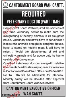 Veterinary Doctors Job In Cantonment Board Wah Cant