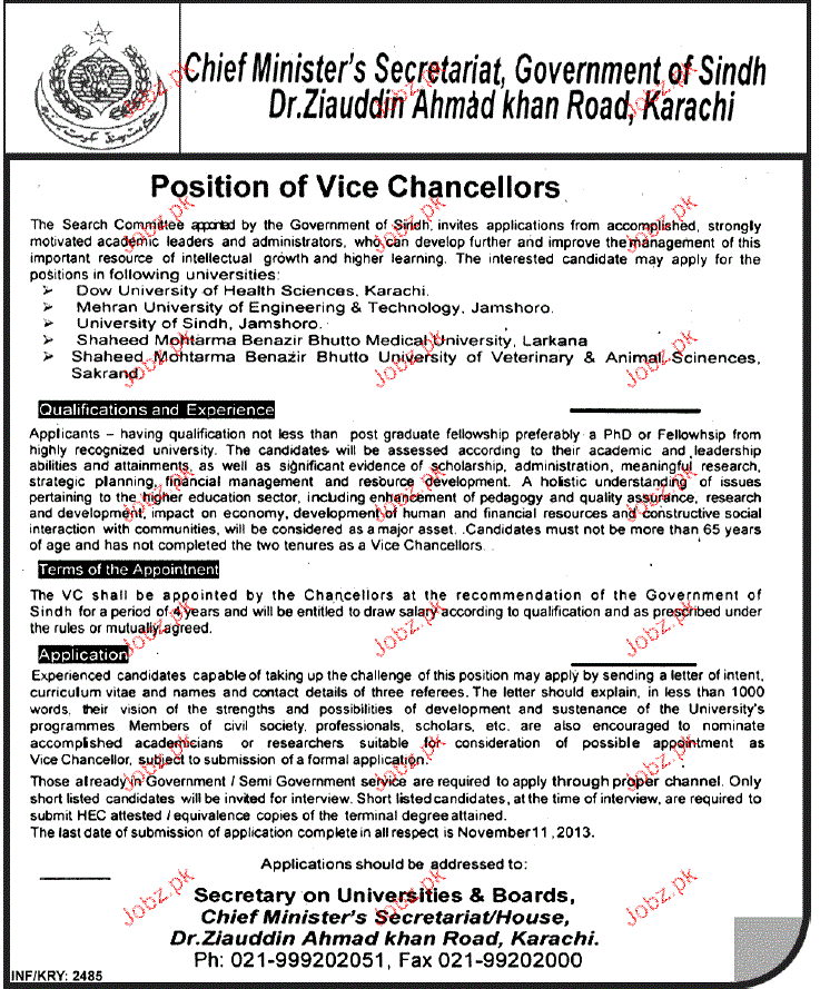 Vice Chancellor Job In Chief Minister's Secretariat Governme