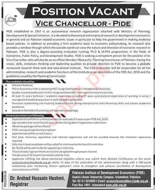 Vice Chancellor Jobs In Ministry Of Planning Development