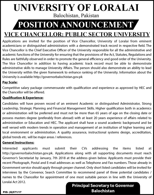Vice Chancellor Jobs In UOLI University Of Loralai