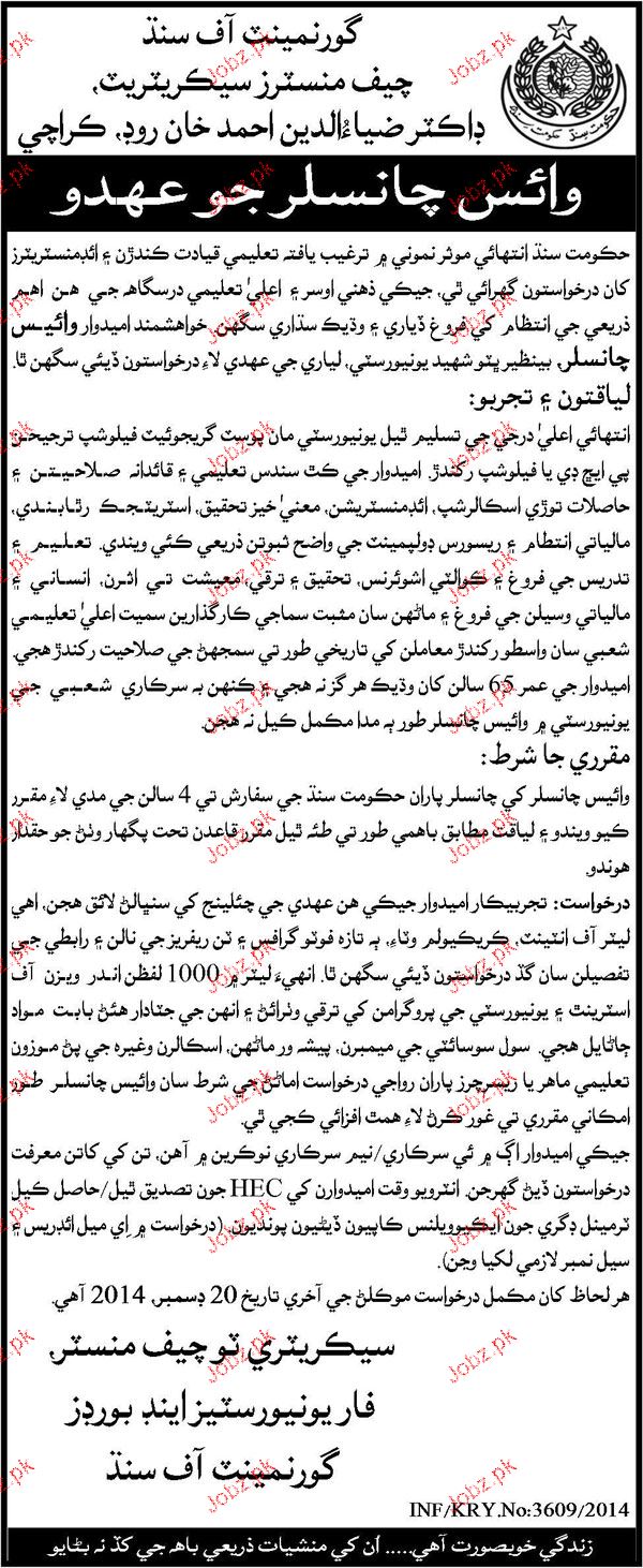 Vice Chancellors Job In Government Of Sindh