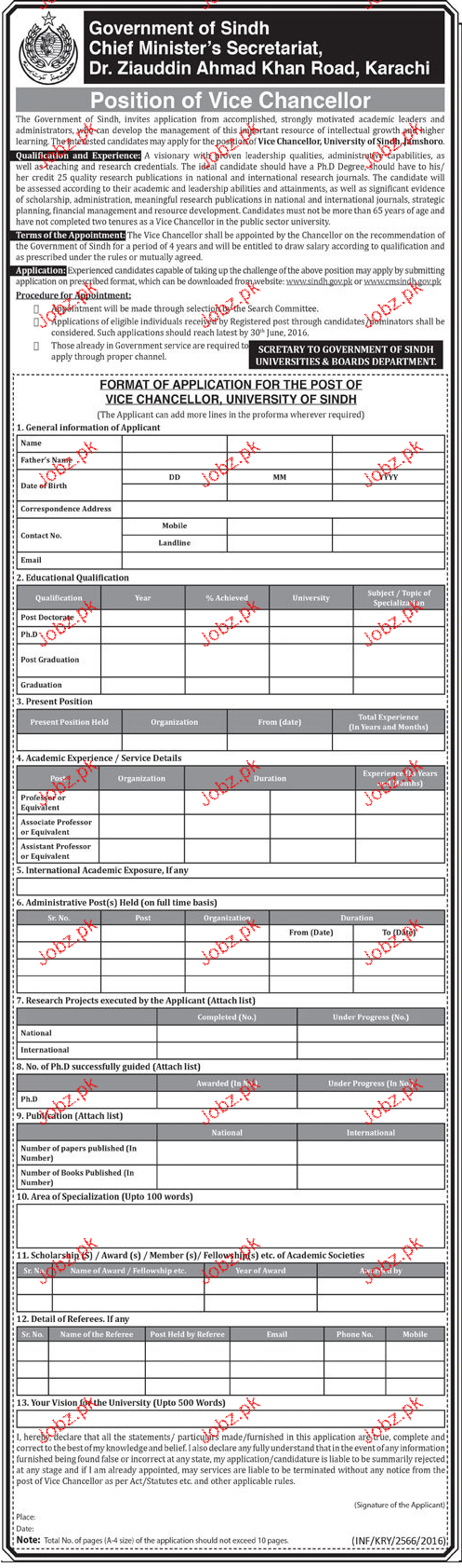 Vice Chancellors Job In Government Of Sindh