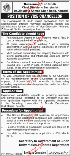 Vice Chancellors Job In Government Of Sindh