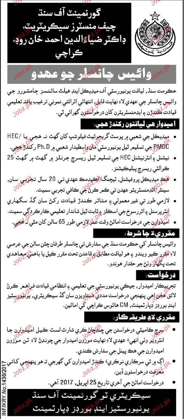Vice Chancellors Job In Government Of Sindh