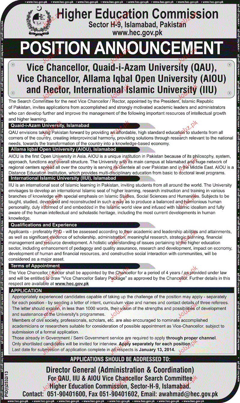 Latest Quaid i Azam University Management Posts Islamabad 2025