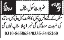 Vacant posts including physics teacher, vice principal, english teacher, computer teacher, islamiat teacher, accountant, biology teacher, urdu teacher, pak studies teacher, mathematics teacher, teacher and chemistry teacher are announced in Private School Quetta, quetta Balochistan Pakistan as per 27 February 2023 advertisement in daily Jang Newspaper. Preferred Education is Master and Bachelor etc.