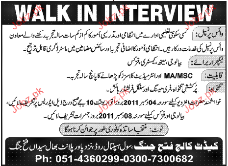 Latest Cadet College Teaching Posts Fateh Jang 2025
