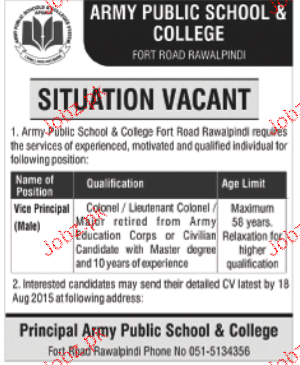Vice Principal Job In Army Public School And College