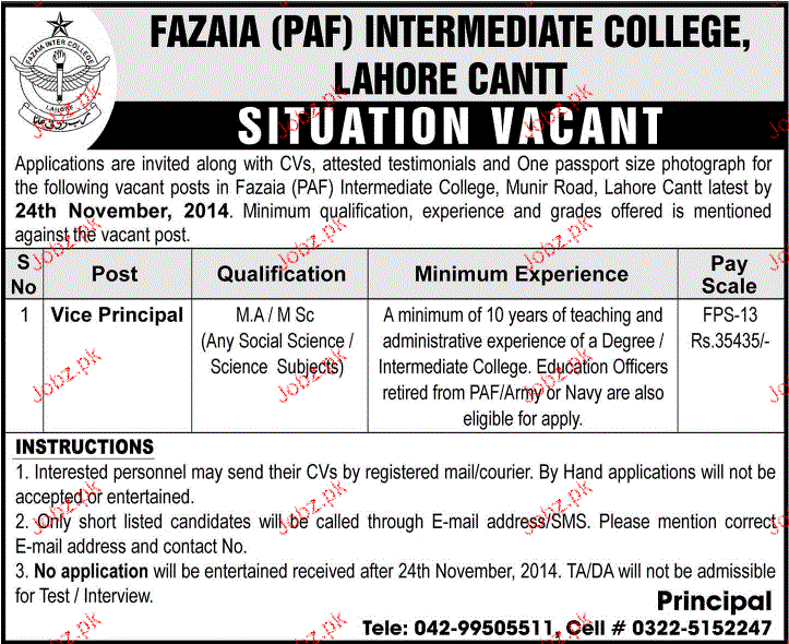Apply as per details in job advertisement. Login to view further details of how to apply via https://www.jobz.pk online.
