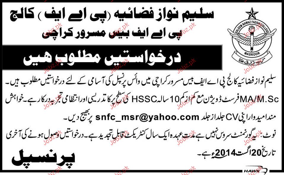 Vice Principal Job In Sleem Nawaz Fazaia College