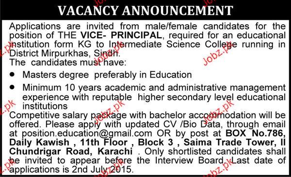 Vice Principal Job Opportunity