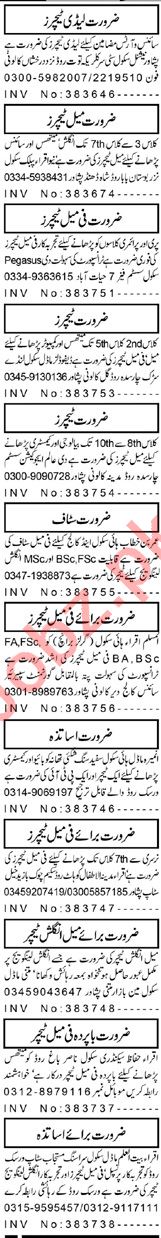 Vice Principal, Coordinator, Teacher, Quran Teacher, English Teacher, Chemistry Teacher, Physics Teacher, Biology Teacher, Maths Teacher, Urdu Teacher, Art Teacher, ESL Teacher, High School Teacher, History Teacher, Kindergarten Teacher seeks in well known schools.