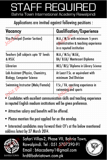 Apply as per details in job advertisement. Login to view further details of how to apply via https://www.jobz.pk online.