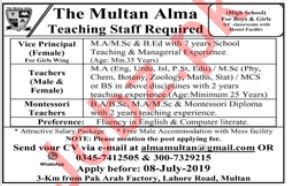Vice Principal & Teaching Jobs In Multan