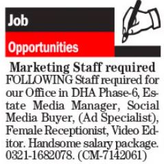 Video Editor & Social Media Buyer Jobs 2024 In Lahore