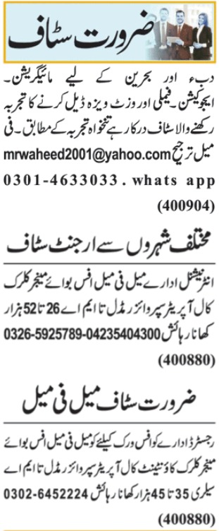 Private Company latest Classifieds Management jobs and others can be applied till 28 April 2024 or as per closing date in newspaper ad. Read complete ad online to know how to apply on latest Private Company job opportunities. Some jobs in Private Company may require skills like Telephone Handling, Accounting, Management and Visa / Immigration. On job food and accommodation facility is provided.