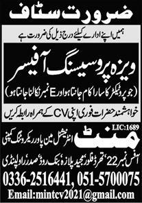 Vacancies in Mint International Manpower Recruitment Company Advertisement December 2021