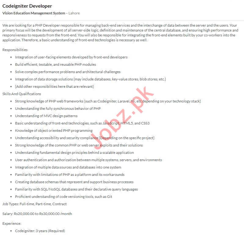 Vision Education SystemCodeigniter Developer Jobs 2020