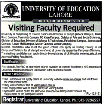 Visiting Faculty Job in University of Education