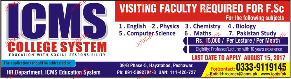 Apply as per details in job advertisement. Login to view further details of how to apply via https://www.jobz.pk online.