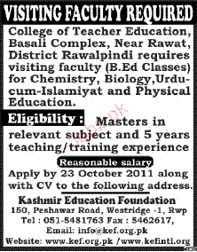 Latest Private Company Teaching Posts Rawalpindi 2025
