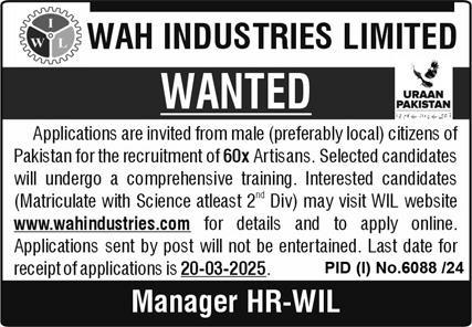 Vacancies in Wah Industries Limited Advertisement March 2025