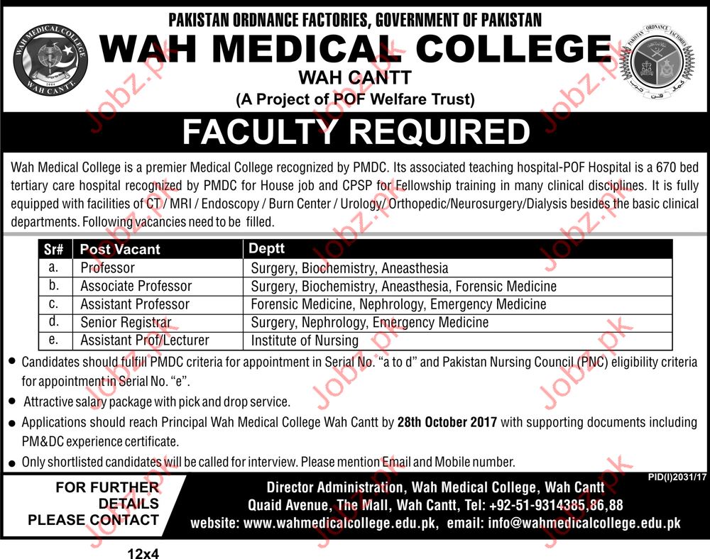 Latest Wah Medical College Teaching Posts Rawalpindi 2025