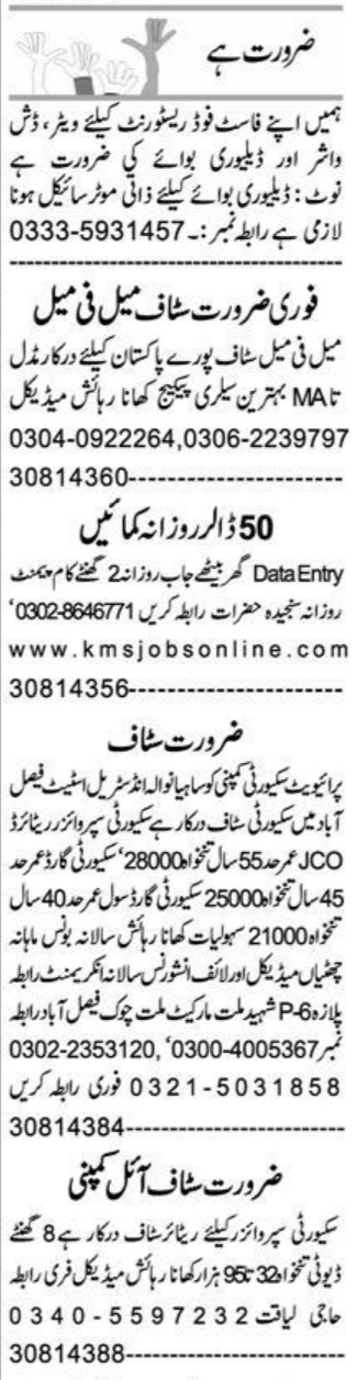 Waiter & Dishwasher Jobs 2022 in Peshawar