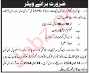 Pakistan Army Kharian, kharian Punjab Pakistan invites applications from eligible candidates for the post of waiter as per advertisement of June 2, 2024 published in daily Khabrain Newspaper. Candidates with Middle etc. educational background will be preferred.