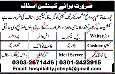 Waiters, Cashiers, Cook, Cook Helpers Job Opportunity