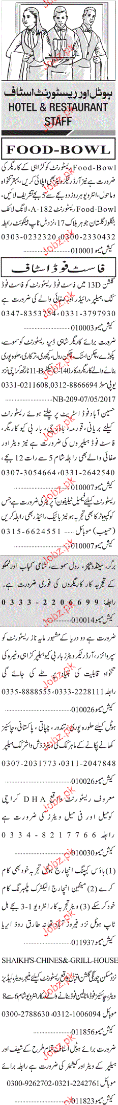 Waiters, Clerks, Order Takers and Cook Job Opportunity