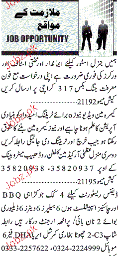 Apply as per details in job advertisement. Login to view further details of how to apply via https://www.jobz.pk online.