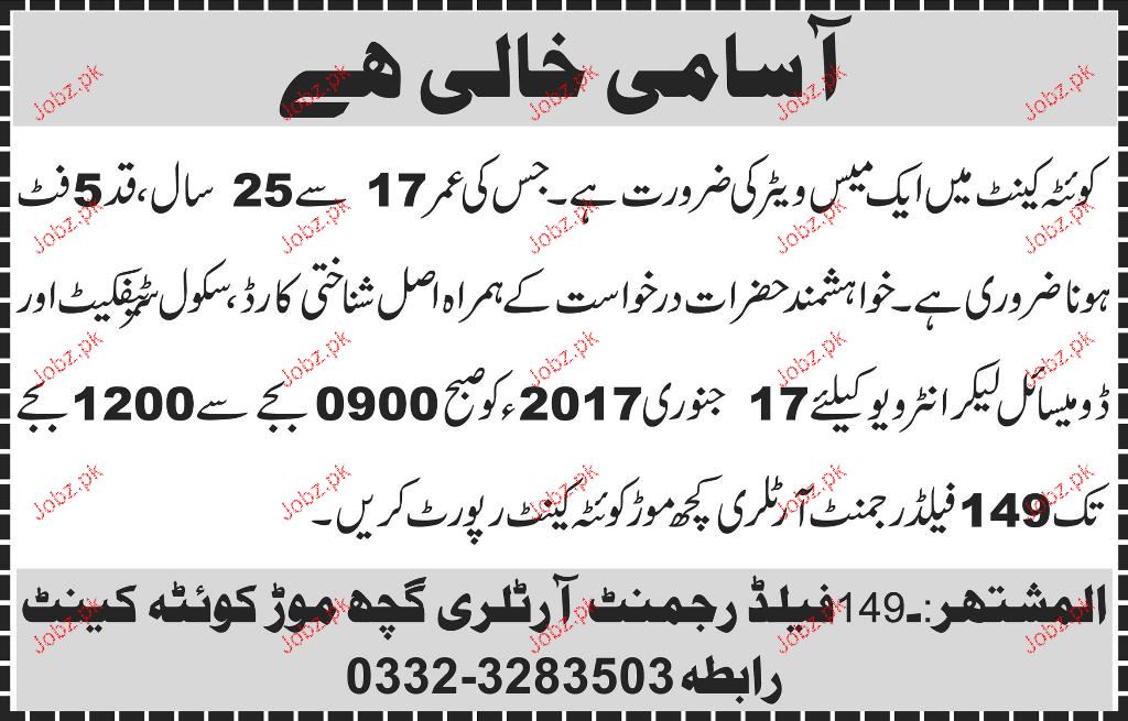 Waiters Job In Pakistan Army
