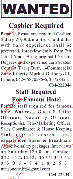 Waitress, Guest Relation Officers, Receptionist Wanted