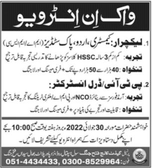 Apply at Cadet College latest Government jobs in Teaching and departments before closing date which is around July 30, 2022 or as per closing date in newspaper ad. Read complete ad online to know how to apply on latest Cadet College job opportunities.