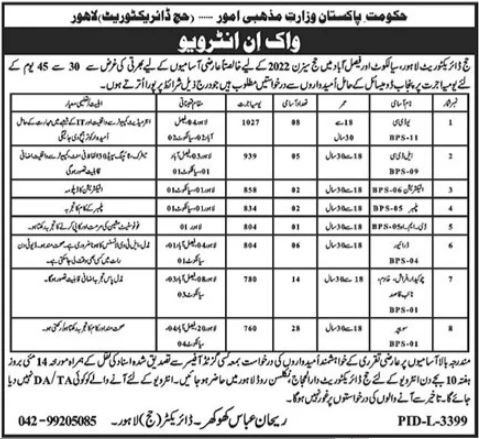 Walk in Interview for jobs at Hajj Directorate Lahore