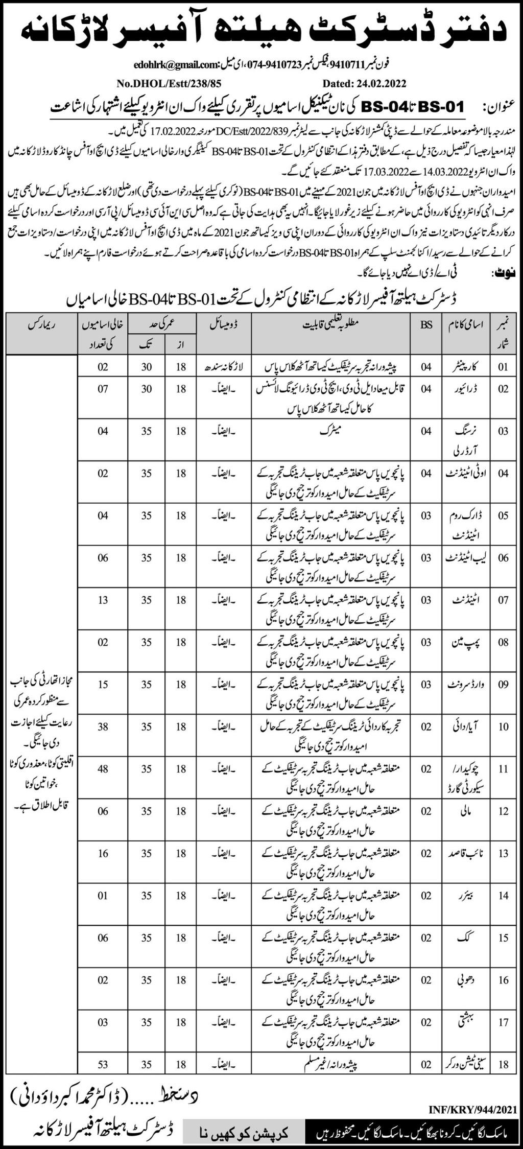 District Health Office is looking for candidates for following posts as per job advertisement published in daily Express Newspaper of February 27, 2022 for location Larkana, larkana Sindh Pakistan: