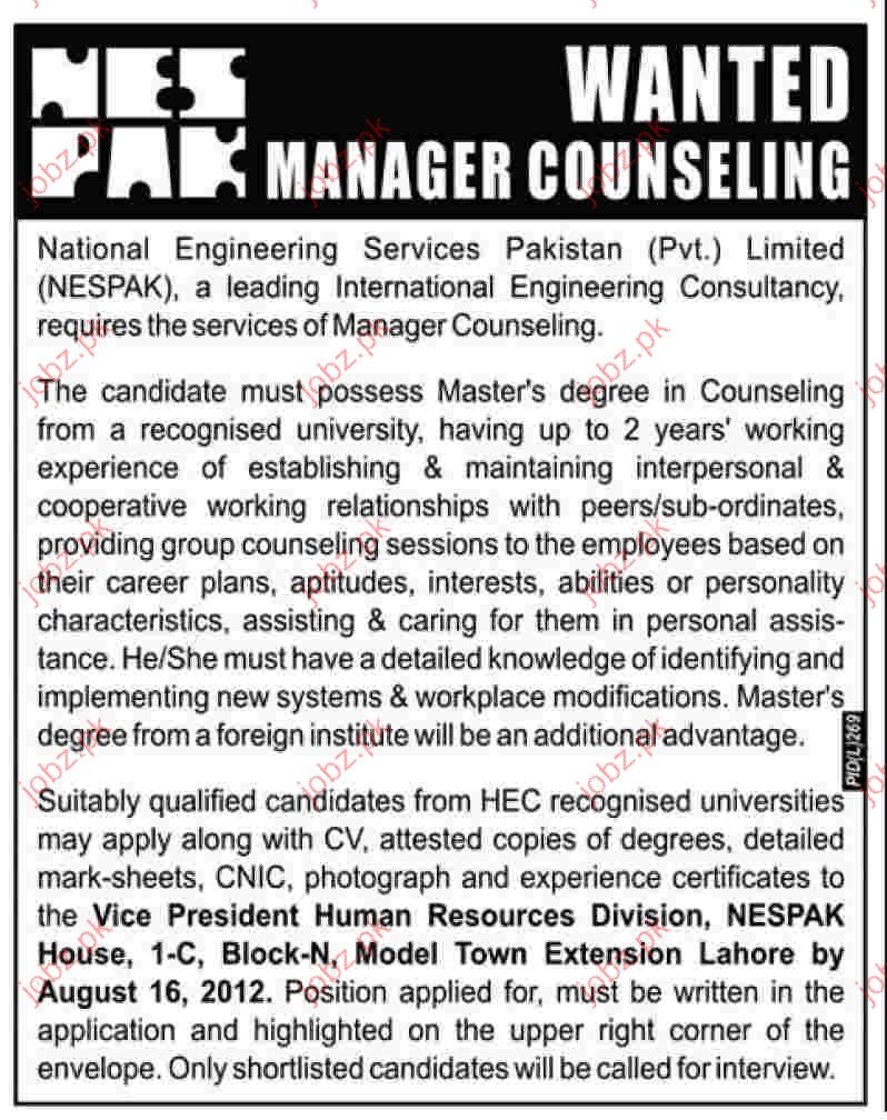 Apply as per details in job advertisement. Login to view further details of how to apply via https://www.jobz.pk online.