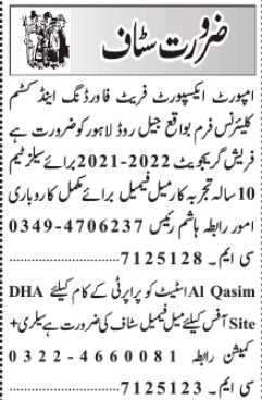 Wanted Staff At Private Company Lahore