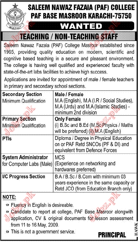 Apply as per details in job advertisement. Login to view further details of how to apply via https://www.jobz.pk online.