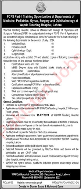 Wapda Hospital Quetta is looking for candidates for following posts as per job advertisement published in daily Jang Newspaper of June 30, 2024 for location Lahore, lahore Punjab Pakistan: