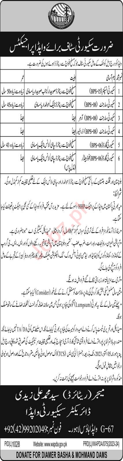 Latest Government jobs in Water and Power Development Authority WAPDA in Security and others can be applied till 9 October 2023 or as per closing date in newspaper ad. Read complete ad online to know how to apply on latest Water and Power Development Authority WAPDA job opportunities.